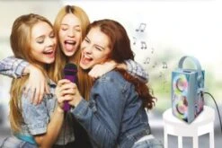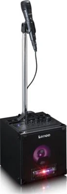 Lenco BTC-070BK – Karaoke-System Mit Bluetooth-Lautsprecher, Partylicht Und Mikrofon Mit Ständer