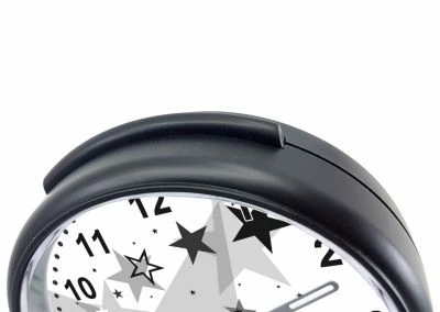 Der Wecker hat keinen Sekundenzeiger und dadurch ist kein Ticken zu hören.