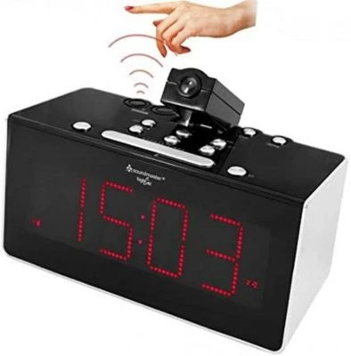 Das formschöne Funkuhrenradio Soundmaster FUR6005 bietet als Highlight eine zuschaltbare Projektionsanzeige, welche die Uhrzeit an die Zimmerdecke oder Wand projiziert.