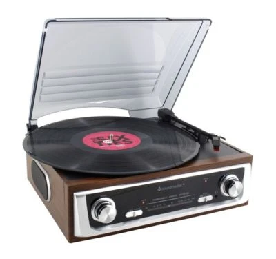 Der Radio-Plattenspieler Soundmaster PL196H ist ein optisches Schmuckstück im 70er-Jahre Design. Der Plattenspieler im edlen Holz-Look Gehäuse wird geschützt durch einen transparenten Kunststoffdeckel, unterstützt verschiedene Geschwindigkeiten (33/45/78) und verfügt über Single- und LP Abspielmöglichkeit.
